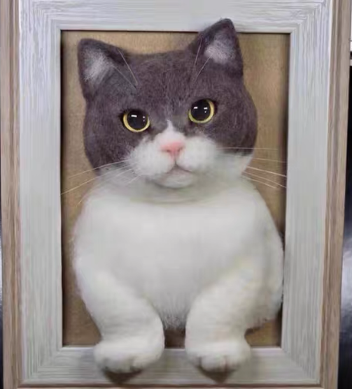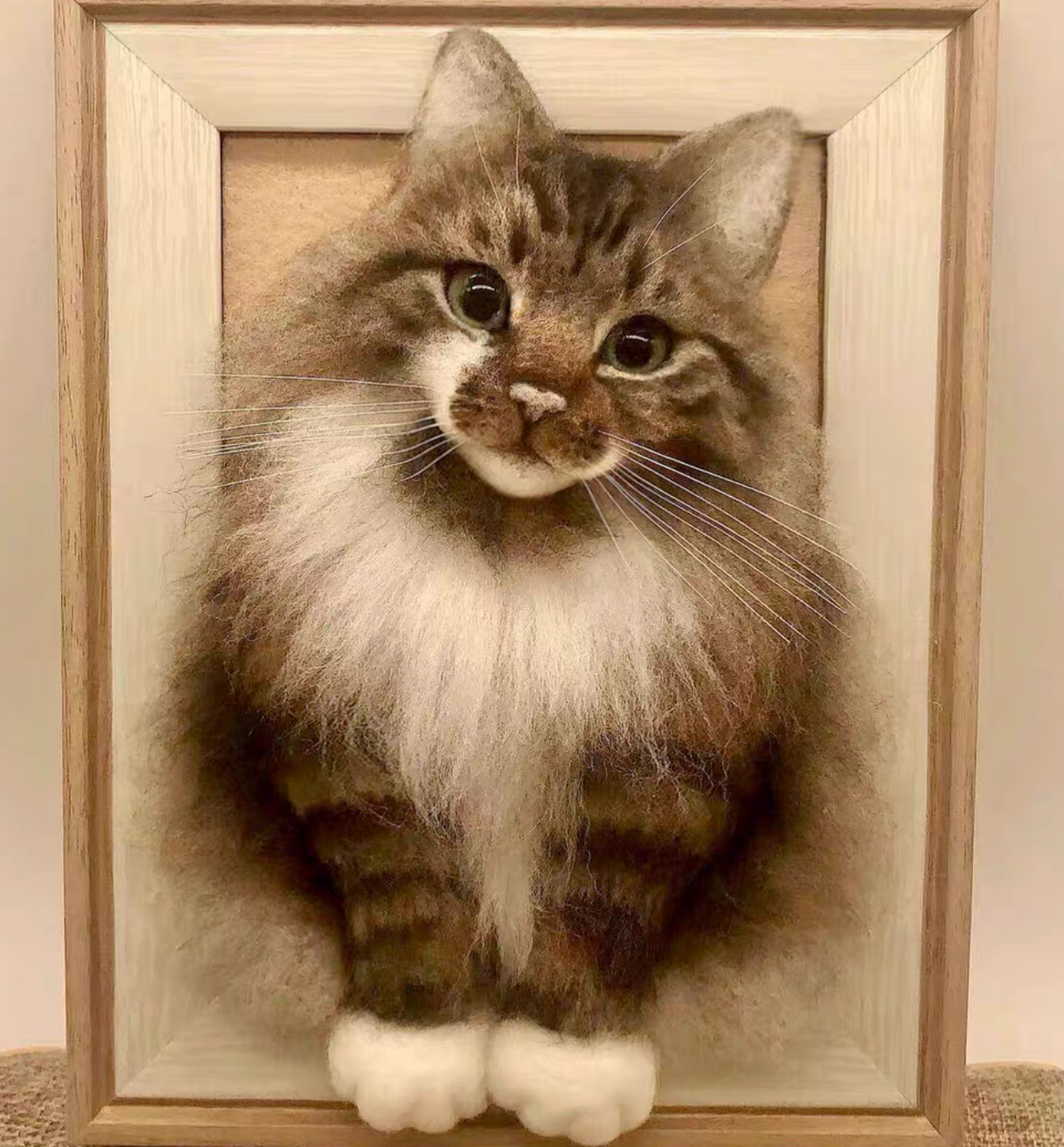 Wool Felt Framed Pet Portrait For Cat ( 7inch Head with Paws )